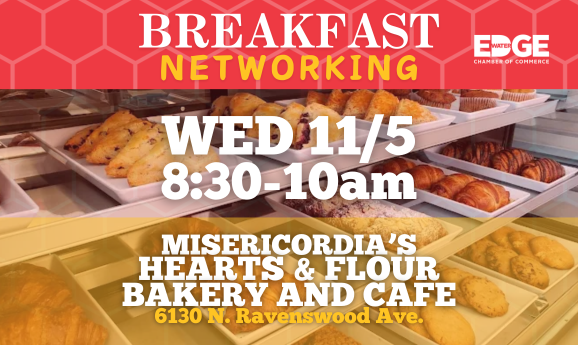 Morning networking over drinks and light bites with short introductions for all attendees, and sometimes a brief presentation from Edgewater Chamber. Everybody is invited. Don’t forget to bring business cards!